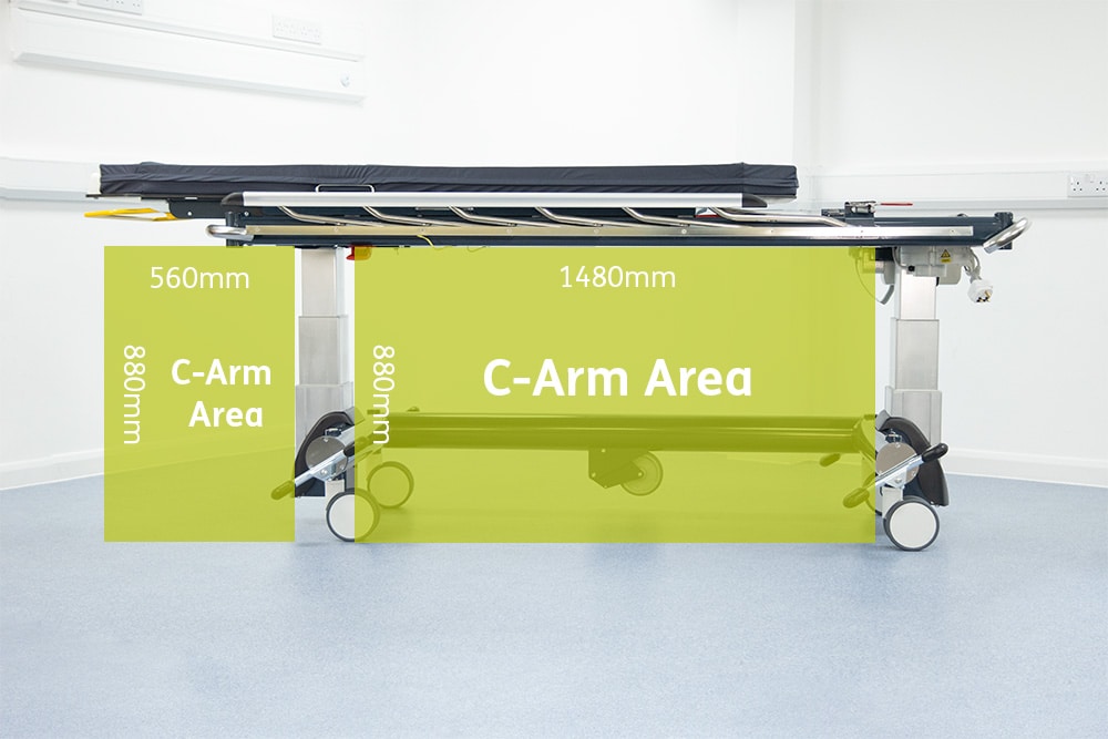 ✔ powierzchnia przezierna dla promieni RTG na całej długości leża